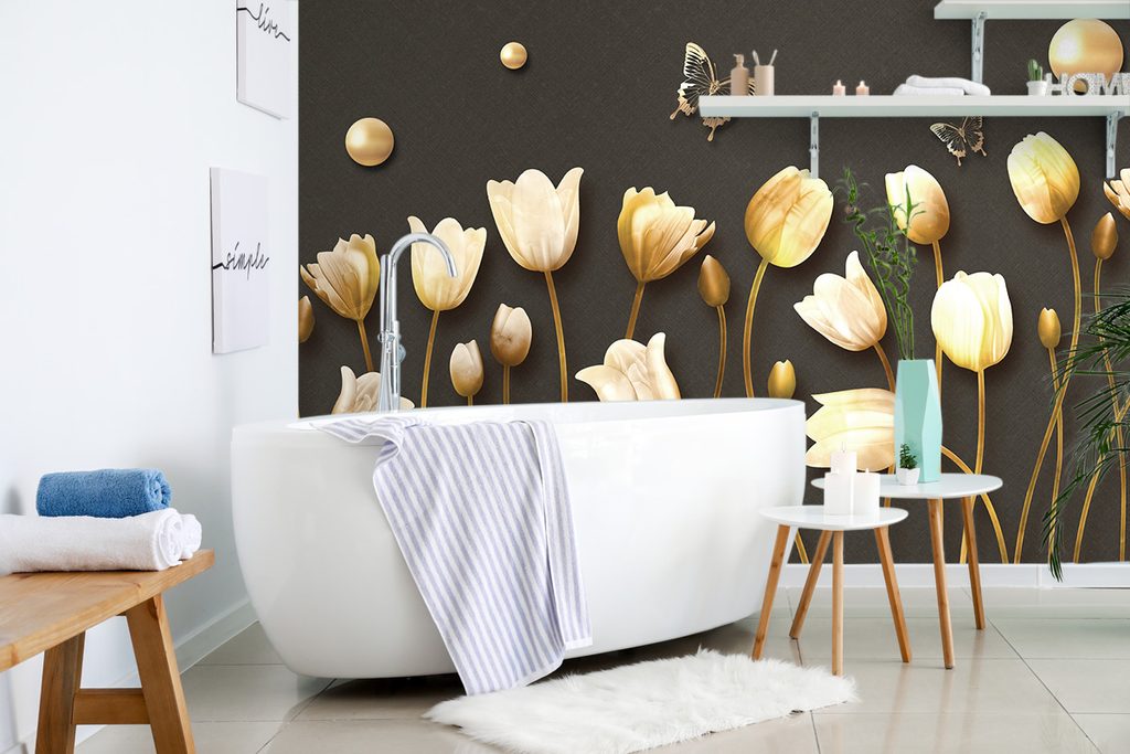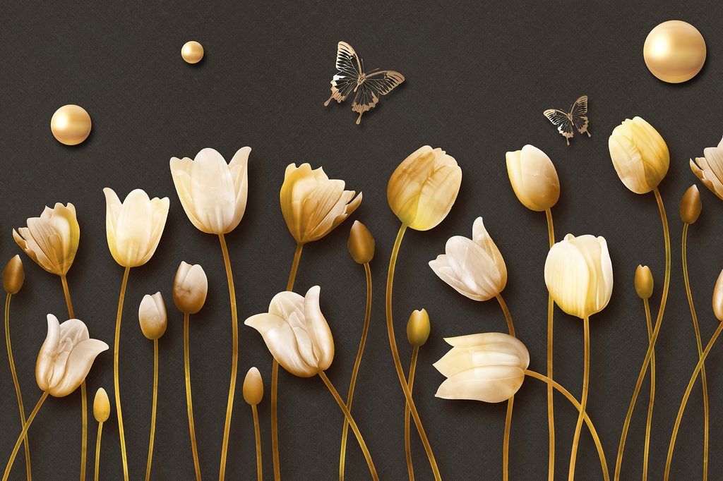 Ταπετσαρία τουλίπες με χρυσό θέμα