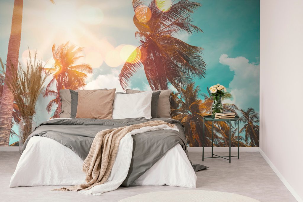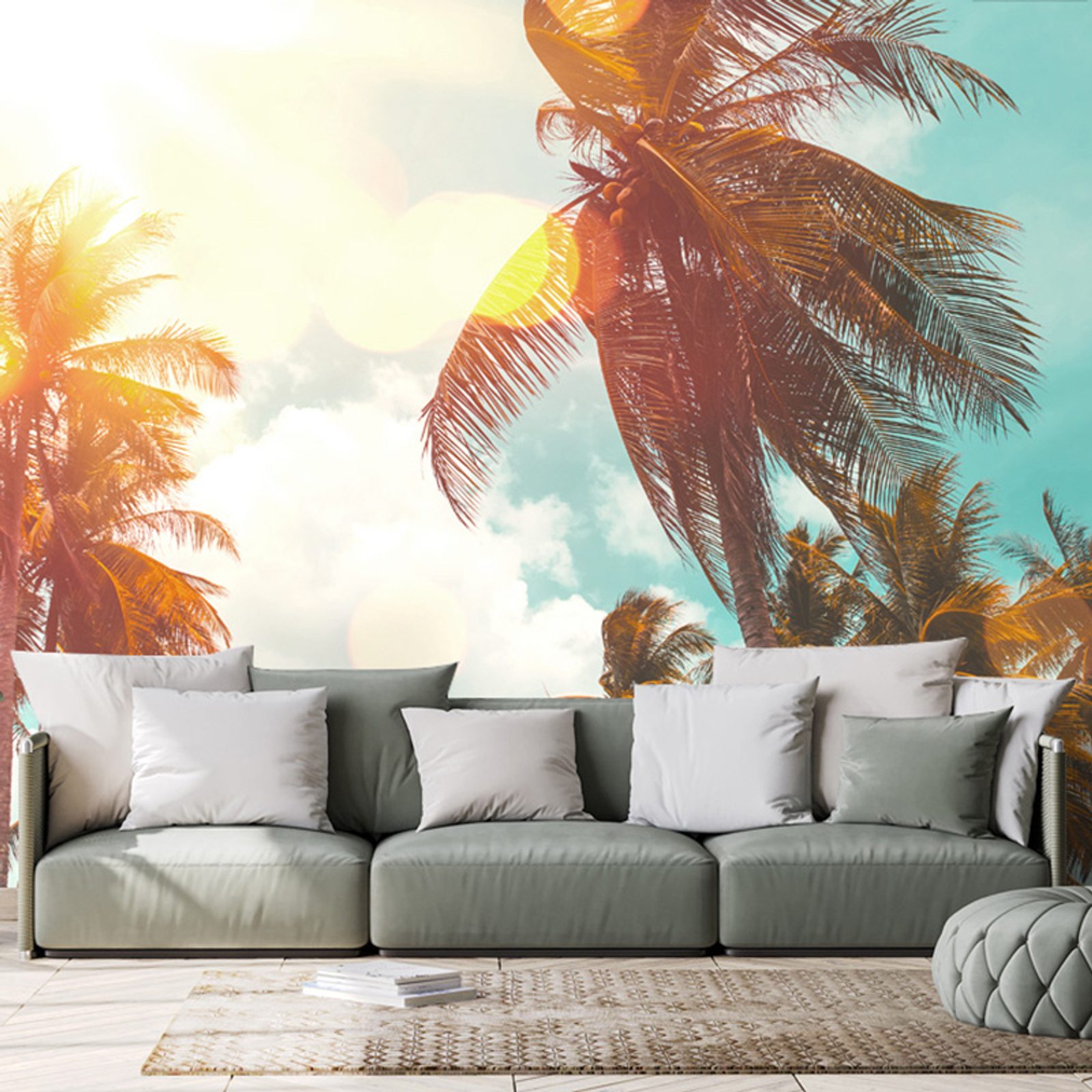 Αυτοκόλλητη ταπετσαρία ακτίνες του ήλιου ανάμεσα σε φοίνικες