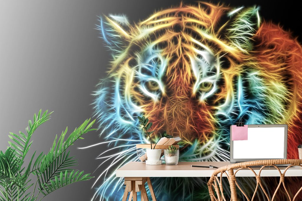 Αυτοκόλλητη ταπετσαρία κεφαλή τίγρης σε αφηρημένο σχέδιο