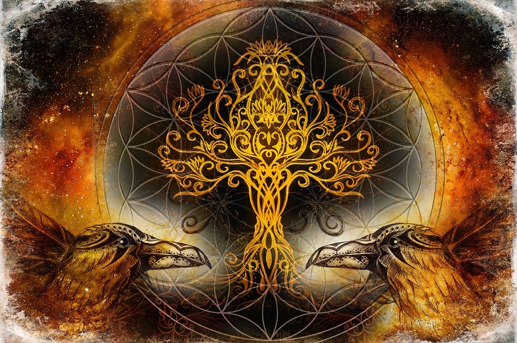 Αυτοκόλλητη ταπετσαρία κοράκια και το δέντρο της ζωής