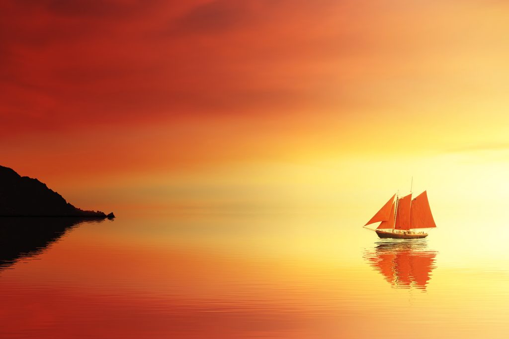 Αυτοκόλλητη τοιχογραφία πορτοκαλί ιστιοφόρο