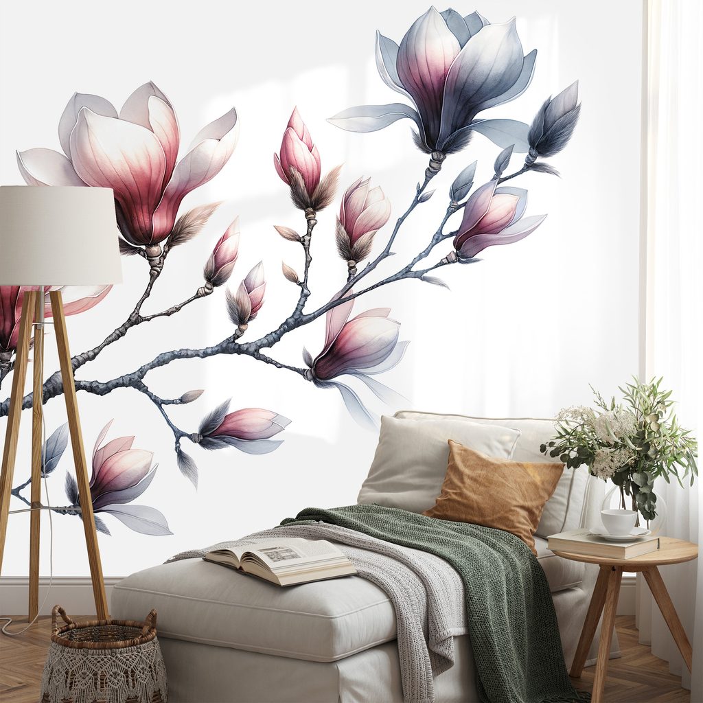 Samolepící fototapeta jemné magnólie na bílém pozadí